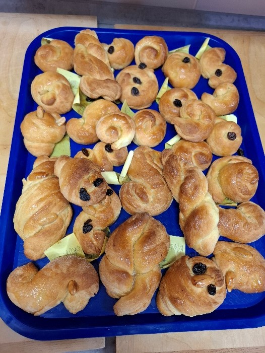 V úterý 31. března se druháčci sešli ve školní žákovské kuchyňce, aby si vytvořili – upekli a snědli tradiční velikonoční pečivo – „jidášky“.