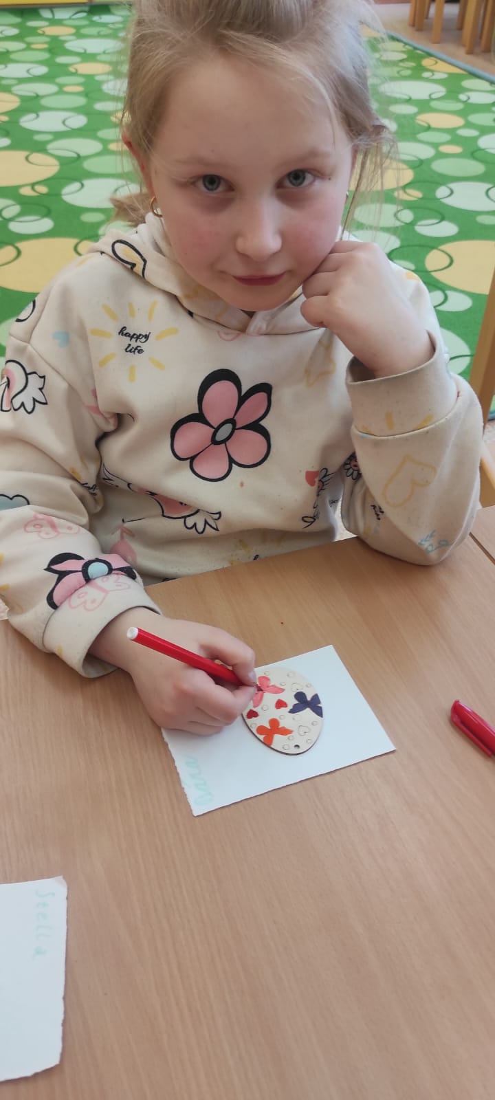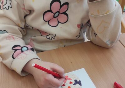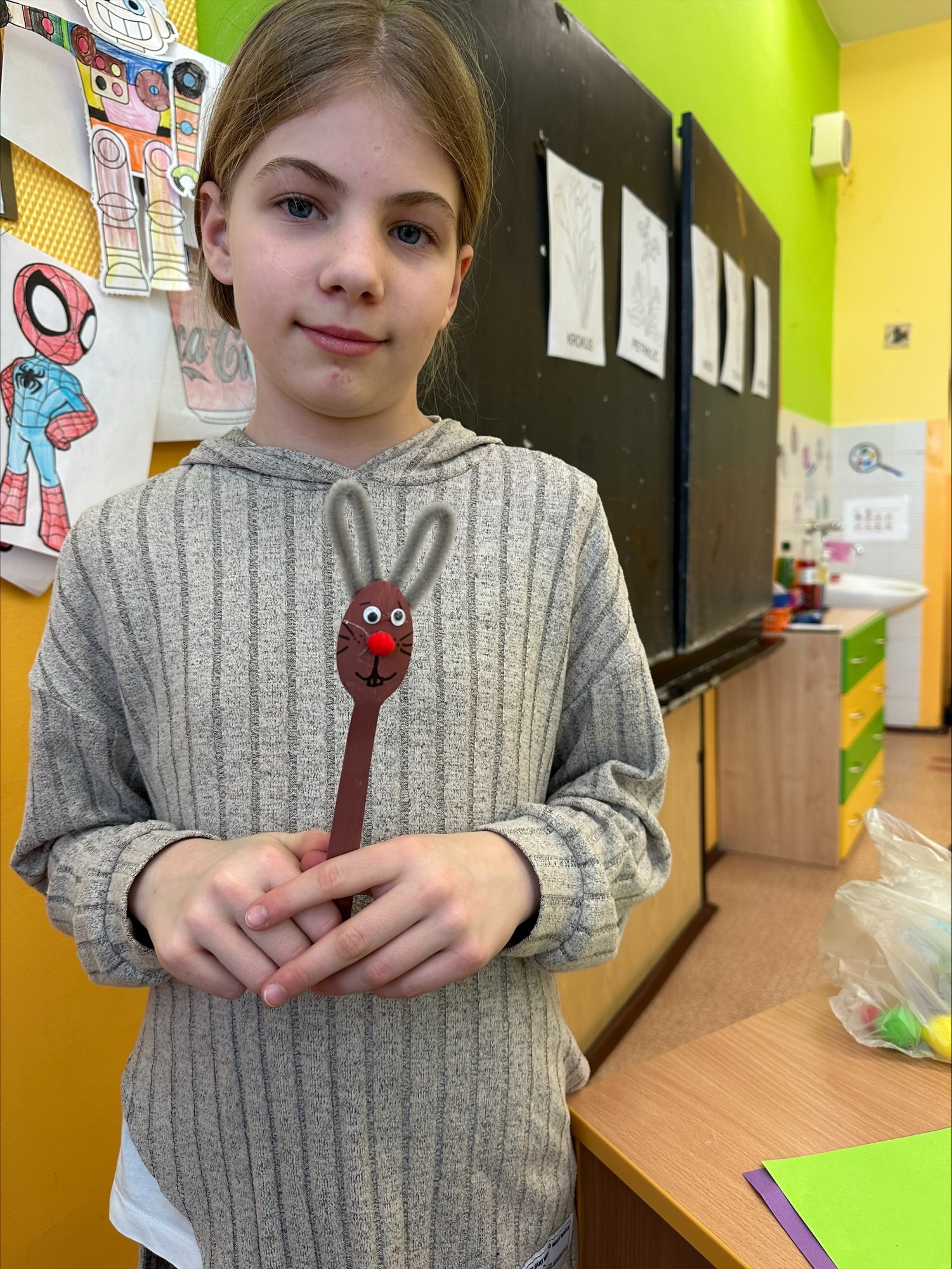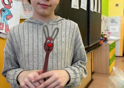 Nezaháleli jsme ani při tvořivých činnostech. Společně jsme se připravovali na Velikonoce – vyráběli jsme sádrová vajíčka, zajíčky i další jarní dekorace. Barevné kytičky, které jsme si vytvořili, nám zpříjemnily prostředí družiny.