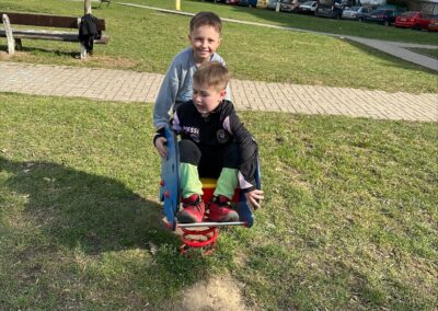 V březnu jsme si v družině naplno užívali první krásné jarní dny a většinu času jsme trávili venku na čerstvém vzduchu. Děti se zapojily do míčových her, skákaly panáka a s nadšením objevovaly i pozorovaly proměny probouzející se přírody.