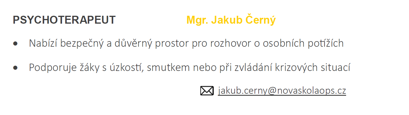 Ve škole mne najdete každý pátek v kabinetu v 1. patře nad školní jídelnou.
